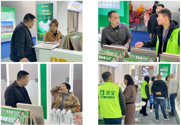 以更高效辦展模式——“展”“會(huì)”結(jié)合,助力展商和觀眾交流資源,共話商機(jī)。雪寶展位開(kāi)展三天以來(lái)現(xiàn)場(chǎng)人氣火爆,雪寶A館-B特3展位用醒目大氣的高顏值、卓越領(lǐng)先的產(chǎn)品力、配套齊全的服務(wù)力吸引廣大賓客朋友走進(jìn)雪寶展位。同時(shí),我們極具競(jìng)爭(zhēng)力的新產(chǎn)品、全新的品牌VI以及新IP形象,吸引著大量顧客的眼光,深入了解板材生產(chǎn)工藝以及展館內(nèi)陳列的優(yōu)質(zhì)產(chǎn)品,前來(lái)展館體驗(yàn)產(chǎn)品和洽談合作事宜的顧客絡(luò)繹不絕。