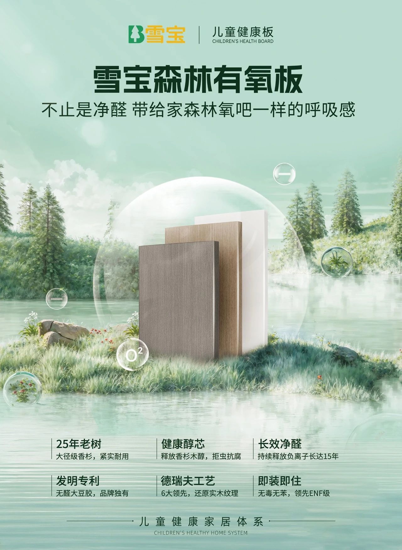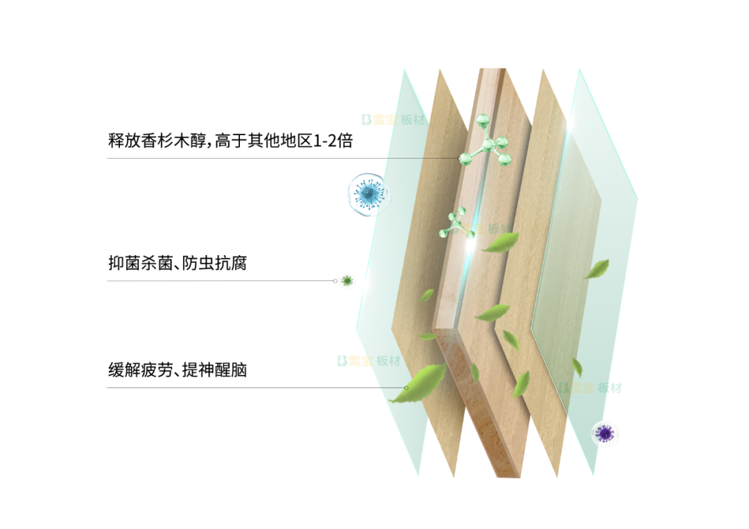 抗菌防霉!凈醛負(fù)離子!抗蟲蛀!散發(fā)天然原木清香的功能型雪寶板