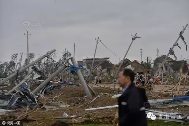 6月23日下午,阜寧縣新溝鎮(zhèn)等地出現(xiàn)34.6米/秒(12級)大風(fēng),射陽海河鎮(zhèn)等地出現(xiàn)27.9米/秒(10級)大風(fēng),龍卷風(fēng)席卷之處造成磚瓦房粉碎性破壞,鋼架扭曲、汽車被卷走、廠房被夷為平地、學(xué)?逅,部分地區(qū)的電力和通訊中斷。