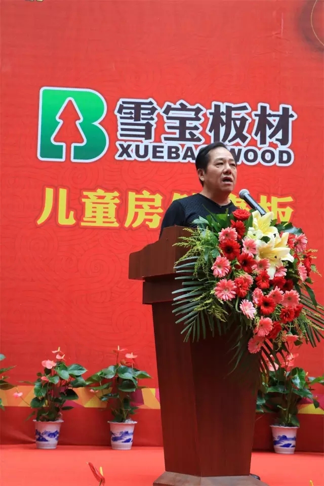 ▲雪寶板材國(guó)內(nèi)營(yíng)銷(xiāo)中心總經(jīng)理李振先生為開(kāi)業(yè)典禮致辭