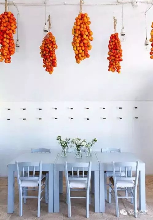 橘黃和粉藍(lán)的撞色搭配,清新自然讓人眼前一亮。
