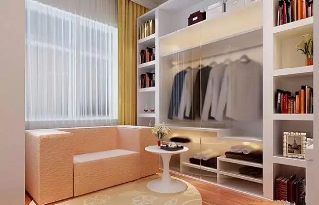 家具可以在外面購買,也可以在裝修時(shí)整體設(shè)計(jì)制作,為節(jié)省空間,衣帽間最好設(shè)計(jì)成推拉式,里面的衣櫥可以不做門。