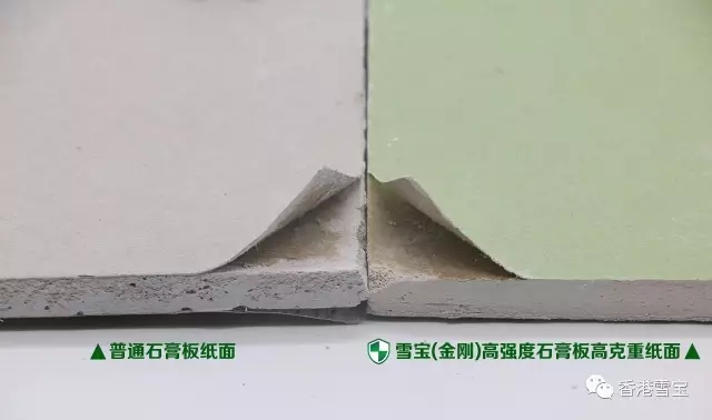 雪寶(金鉆)720度除醛石膏板紙面采用桑皮紙雙面粘合,不再是傳統(tǒng)石膏板產(chǎn)品單面粘合工藝,耐火性能更是桑皮紙?zhí)匦灾唬瑫r石膏板強度更高、握釘力更強,明顯優(yōu)于市面上其他石膏板產(chǎn)品。