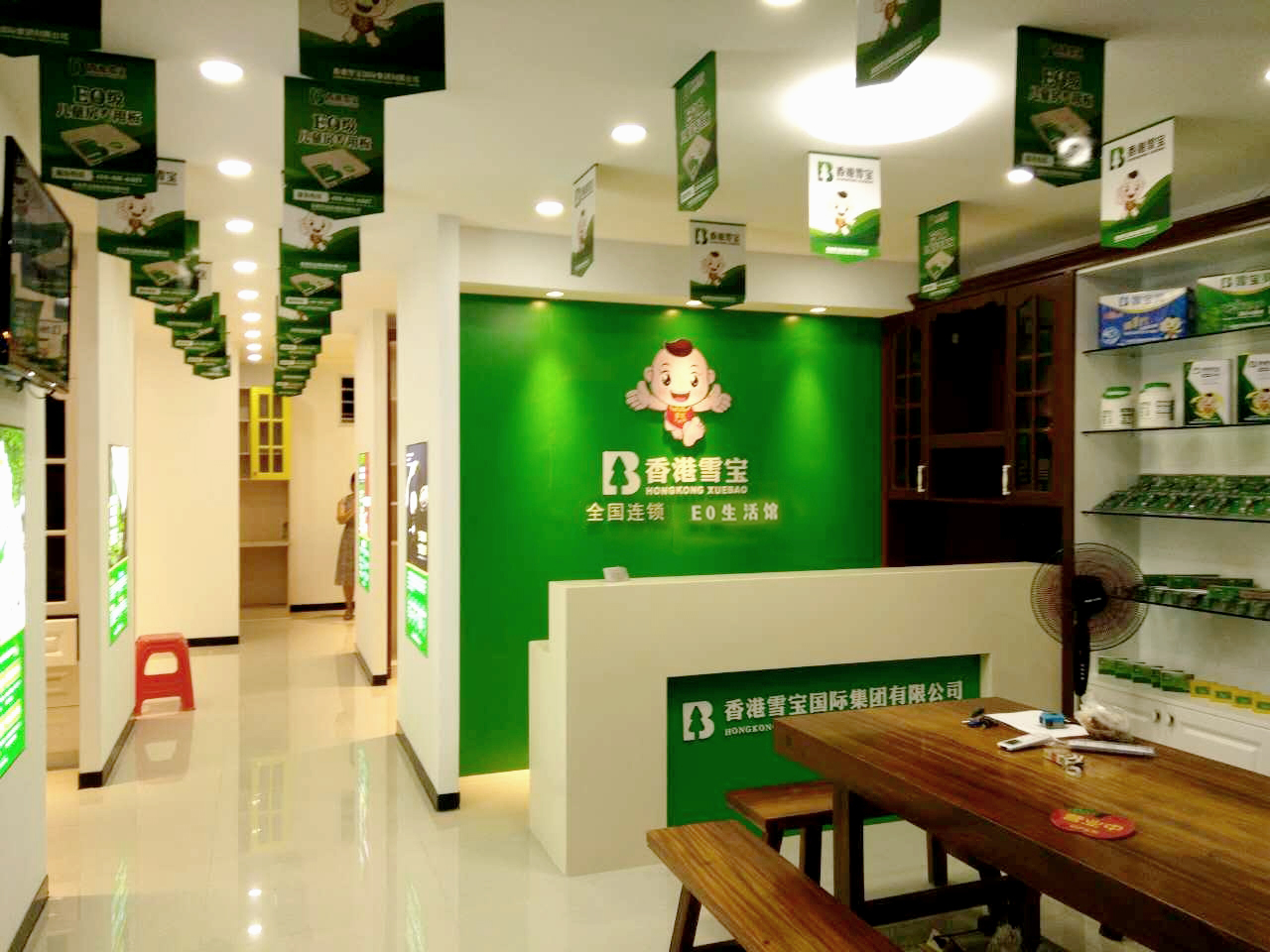 從進(jìn)店看到雪寶小天使的背景墻到一窺各個(gè)展區(qū)的長(zhǎng)走廊,明亮的燈光布置和隨處可見(jiàn)的品牌文化宣傳給人專業(yè)高效,品質(zhì)優(yōu)秀的視覺(jué)印象。