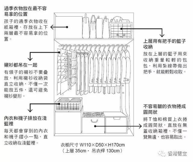 由于上層不容易收取,因此擺放過(guò)季或者不常用的物品。將使用頻率較低的物品往內(nèi)部收納是訣竅。